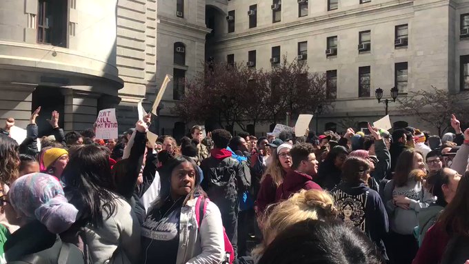 In Philadelphia, several hundred students walked out of their schools and rallied outside City Hall. where they staged a “die-in” before dispersing.