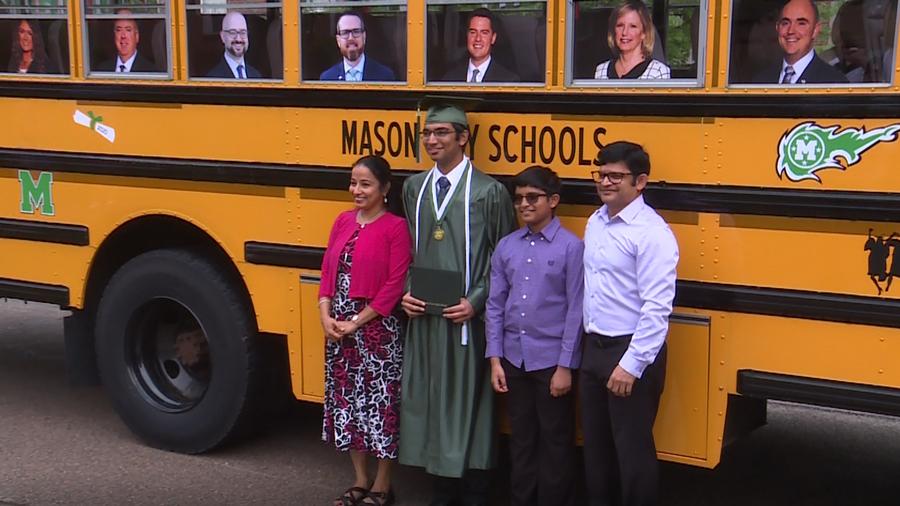 There are 881 students graduating from Mason High School on Sunday. But on Friday, a ceremony that no one ever expected will be held to congratulate them. Thirty buses will go door to door and hand deliver diplomas in a socially distanced version of a ceremony.